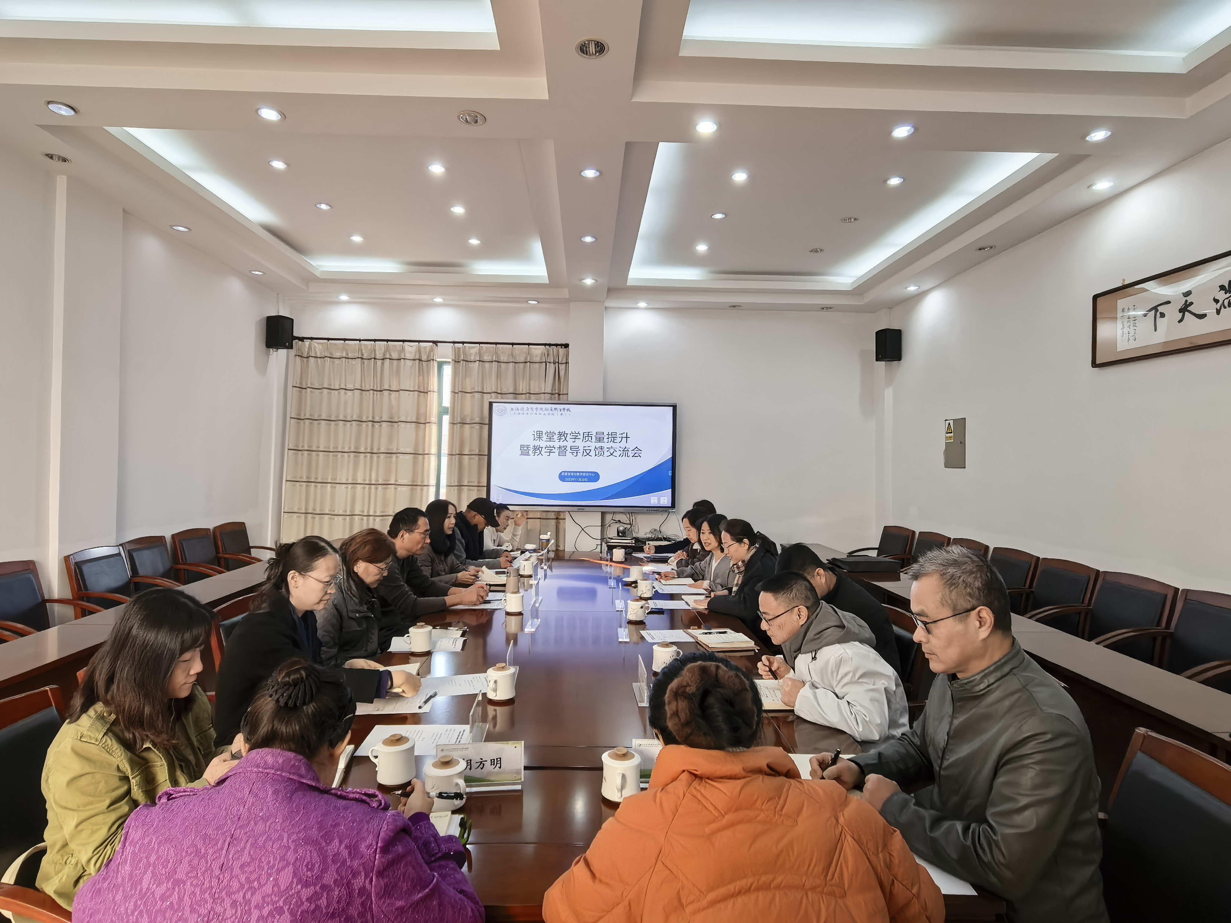 为进一步加强教学质量监控,精准把脉课堂教学实况,持续推动教学质量提升,11月20日上午,学校组织召开课堂教学质量提升暨教学督导反馈交流研讨会。校长陈荣凤,教学管理部门负责人、各系部教学负责人,金山校区校长陈晓钰,教务科科长、学科组长,以及校外督导专家代表共同参会。