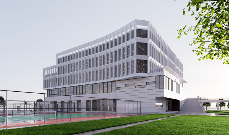 师生服务中心位于校园生活区,一幢地上三层建筑,功能设置包含学生餐厅、教工餐厅、体育馆等,可满足师生就餐、体育锻炼、健康管理等相关需求。