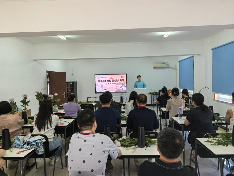9月26日下午1时,行政第二党支部联合心理健康教育中心在1号楼401会议室举办了一场别开生面的主题党日活动。此次活动以“传统中式插花”为主题,将《习近平谈治国理政》第五卷的学习与非遗文化体验相结合,旨在通过插花艺术深化同志们对习近平新时代中国特色社会主义思想中文化自信与生态文明理念的理解。同时,活动为大家提供了一个在传统花艺的雅致氛围中放松身心、释放压力的机会,帮助大家在忙碌的工作中找到心灵的平静,筑牢心理健康防线。活动由党支部书记苏李欢主持。