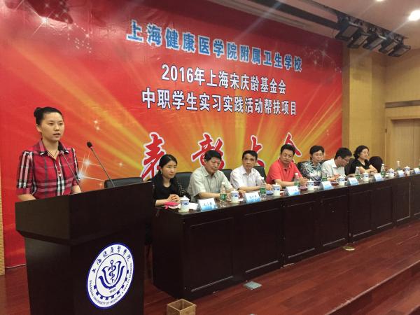 会上曹蓉蓉宣读了2016年上海宋庆龄基金会中职学生实践活动“优秀学生”表彰决定,获得此项基金会表彰的“优秀学生”共158人次,获得资助的困难实习生有43人次,共计奖助金4.7万。我校常务副校长朱文娟对上海宋庆龄基金会、上海市职业教育协会致力职业教育事业发展,关注中职实习生的成长表示衷心感谢,并介绍了我校2016年上海宋庆龄基金会中职学生实践活动帮扶项目的开展情况。
