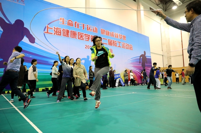 整个比赛,高潮迭起、精彩纷呈。集体项目:跳长绳、定点投篮、阳关伙伴;个人项目:跳短绳、掷飞镖、踢毽子。教工们踊跃参加、积极响应,热情高涨,为彼此加油、欢呼、喝彩。整个校园气氛热烈。