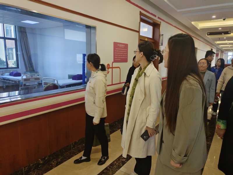 座谈结束后,在院方领导的陪同下,交流人员实地参观了护理与健康学院的教学实训综合大楼,走进老年状态模拟体验中心、居家照护模拟实训室、医电产品智能生产实训室等特色场地,认真观摩先进实训设备的配置与使用情况,详细了解实训室教学管理模式、实践教学开展路径及1+X证书试点落地情况,对学院贴合行业需求的实训体系建设和鲜明的技能育人特色给予高度评价 。