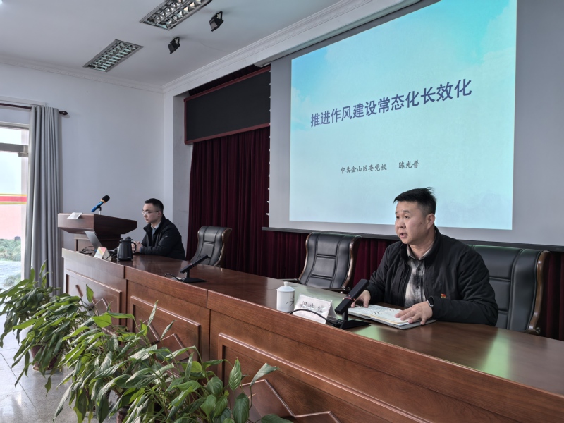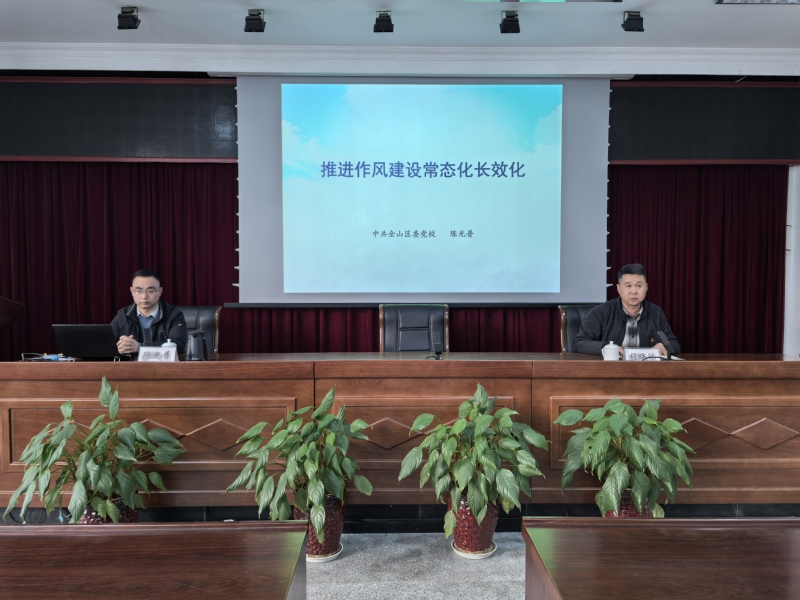 理论领航,深植廉洁之根。活动伊始,中共金山区委党校陈光普教授作了题为《推进作风建设常态化长效化》的专题讲座。陈教授紧扣新时代全面从严治党的新要求,深入阐释了作风建设对于党性民心及事业成败的极端重要性,并结合典型案例,对形式主义、官僚主义等“四风”顽疾的危害进行了深入剖析。讲座强调,要以钉钉子精神贯彻落实中央八项规定精神,通过“学、查、改”一体推进,引导党员厘清作风与党性、民心、理想信念的内在逻辑,为加强作风建设提供了坚实的理论支撑和实践路径。
