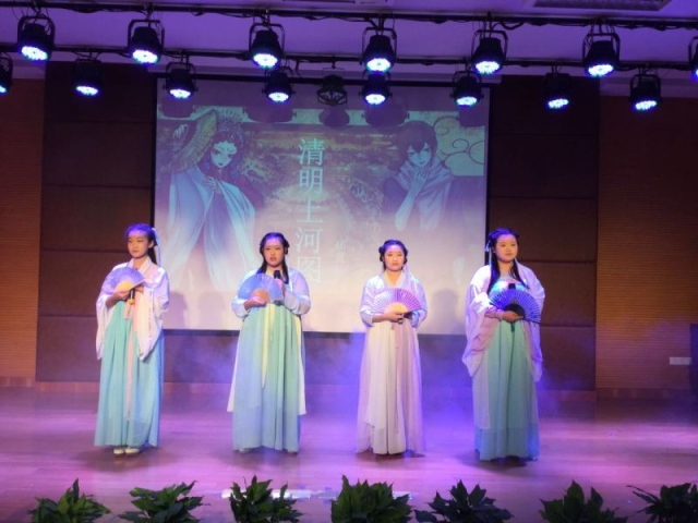 而12月28、29日两天中午的文艺演出,更是将整个文化艺术氛围推向了高潮。各班和部分社团、教师工会通过20个节目,以暖场视频、舞蹈、歌曲、相声、情景剧、歌舞秀、民乐合奏、朗诵、哑剧等多种形式为全校师生准备了两场饕餮盛宴。学校部分党政领导、班主任、班级学生代表及个别家长也前来观赏了节目,并对每个节目都报以热烈的掌声及高度的评价。