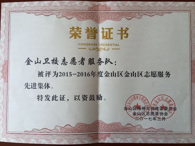 在3月5日下午召开的金山区“3.5”学雷锋纪念日活动暨志愿者表彰大会上,我校志愿者服务队荣获“2015-2016年度金山区志愿服务先进集体”称号。