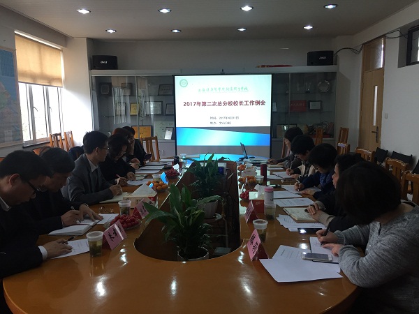 4月11日中午,上海健康医学院附属卫生学校2017年第二次总分校工作例会在宝山分校召开。常务副校长汤磊、副校长兼党总支书记朱文娟、副校长刘宏正、5所分校的校领导以及相关科室负责人参加了会议。
