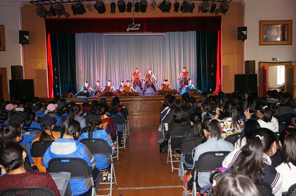 上海歌舞团,成立于1979年6月,2009年11月转企改制,创作演出中国民族舞剧、舞蹈、声乐作品,在国内外舞台上颇有艺术影响力,是上海城市文化名片之一。当天现场观看演出的除了徐汇校区的师生,还邀请了两所分校的师生前来观看。
