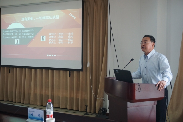 最后,黄钢代表学校党政讲话,他对校园安全工作提出4点要求:第一,安全工作重于一切,是学校事业发展的基础,各部门务必高度重视,群策群力,共同努力做好校园安全工作;第二,各部门要加强安全意识,时刻提高警惕,做到安全工作时时讲、天天讲、月月讲,只有这样,才能做到时时抓、天天抓、月月抓,切实将安全工作做实做细;第三,各部门要高度关注一些安全薄弱环节,高度重视学生提出的问题,不放过任何一个漏洞,不丢掉任何一个盲点,不留下任何一个隐患,最大限度地消除各类安全隐患;第四,安全教育是学校教育非常重要的一部分,需要全员全过程全方位参与。他要求各部门、学院积极组织学生进行安全知识学习、消防逃生演练等活动,并将此类活动作为我校特色性教学内容,使学生在具备专业知识的基础上拥有安全技能。