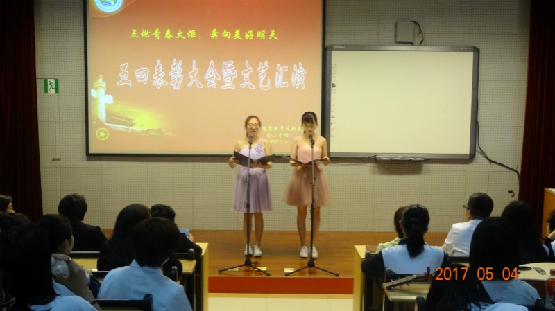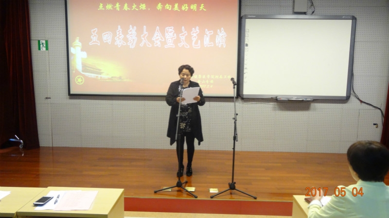 为纪念“五·四”运动98周年,5月4日下午,由学生科、校团委主办、学生会承办的2017年金山区卫生学校“点燃青春火炬,奔向美好明天”文艺汇演在校阶梯教室隆重举行。