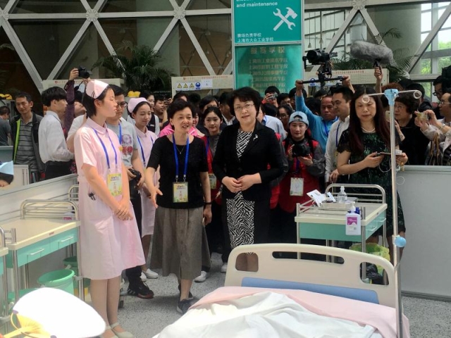 5月6日、7日,第七届“星光计划”职业院校技能大赛圆满落幕之际,由我校组织、上海8所职业院校参加的第七届“星光计划”职业院校护理技能展示在上海科技馆成功举行。上海市副市长翁铁慧、市教卫党委书记虞丽娟、市教委副主任郭为禄等领导亲临现场并对护理技能展示给予了充分肯定。