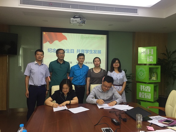 行政第三联合党支部书记李兆伟首先介绍了行政第三联各党支部的基本情况以及党支部开展的一系列活动和工作特色亮点等,附属卫校党总支书记朱文娟主要围绕党员志愿服务工作展开,介绍了“每月一读”的党员志愿者书香校园特色活动和西藏班学生的党员志愿参与管理等工作。双方围绕共同话题开展了结对共建活动,并签订了协议。双方一致达成在共建期间,定期沟通信息,通过不定期联合开展主题党日、组织生活等形式,并结合各自实际情况开展以下共建活动:1、党建交流活动;2、精彩阅读活动;3、民族教育活动;4、课题研究活动;5、总结交流活动。