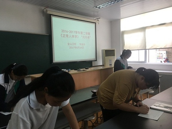 经过一年的理论学习,金山分校16护中高职贯通班已系统地学习了基础医学《正常人体学》。作为职业学校,操作技能的培养必不可少,“月月考”的形式也是检验学生学习掌握的程度之一,学生们也欣然接受。