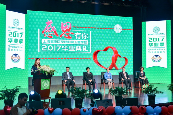 6月28日下午,“感恩有你”上海健康医学院附属卫生学校2017届毕业典礼在浦东校区400人报告厅举行,医学院党委书记郑沈芳、医学院、附属卫校校长黄钢、医学院党委副书记、纪委书记李明磊、副校长唐红梅、张道方出席,附属卫校领导、各分校领导、各职能部门、学院负责人、部分教师代表、家长代表以及2017届430余名毕业生代表出席典礼。