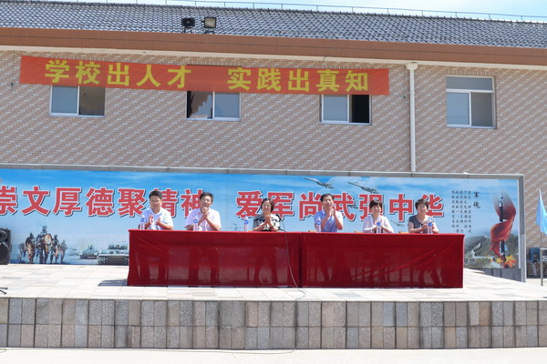 首先全体军训同学观看了参训教官的队列表演。教官们整齐划一的步伐和雄壮嘹亮的口号深深震撼了同学们,博得了阵阵热烈的掌声。接着由参加军训的学生代表带领着全体新生庄严宣誓:热爱祖国,热爱中国共产党!服从命令,服从指挥!强健体魄,磨练意志!吃苦奉献,不怕困难!立志成才,报效祖国!