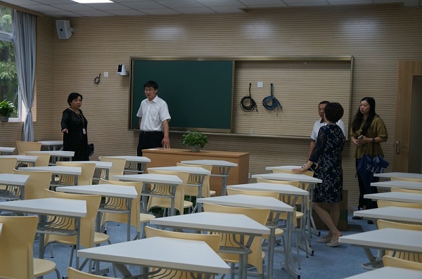 9月20日上午,朱泾镇姚德磊副镇长、教委胡忠新老师及社事办陈悠佳老师一行3人来我校进行调研考察。在周芬华校长和夏美芸书记的陪同下姚副镇长深入校园,参观了我校教学区、实训室、录播教室及青年活动中心。