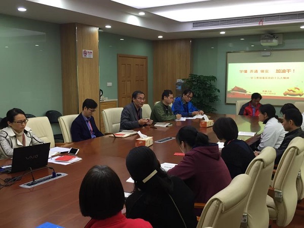 学习从党的十九大主题“不忘初心、牢记使命,高举中国特色社会主义伟大旗帜,决胜全面建成小康社会,夺取新时代中国特色社会主义伟大胜利,为实现中华民族伟大复兴的中国梦不懈奋斗。”开始。党支部书记朱彩英同志和大家共同学习党的十九大报告内容,她用简洁明了的图表为大家展示了党的十九大主题和主要成果,并通读报告中关于过去五年的历史性成就和历史性变革、新时代中国共产党的历史使命等前四个部分内容。同时她结合党支部两个部门的实际工作,通俗易懂的和大家展开讨论。她提到,我们要把党的十九大精神融入各项具体工作中,需要大家在实际岗位上与时俱进,要踏踏实实干中学,力求在做实上下功夫。在附属卫校相对独立运行的新征程上,将会面对各种挑战与困难,我们要有强烈的担当精神,要恪尽职守、勤勉工作。