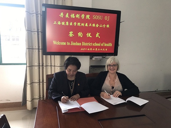 10月26日,丹麦健康护理学院SOSU OJ的友人再次到我校访问,洽谈进一步进行养老护理方面的国际教育培训合作,签订了第二轮的共同办学协议。双方就两国的养老理念、老年人的心理疏导、临终关怀等方面进行了深入探讨,同时希望对二年前共同培训的并已在金山颐和苑养老院上岗的养老护理员作成效评价,为明、后两年养老护理员岗前培训工作的开展打下更好的基础。(金山分校)