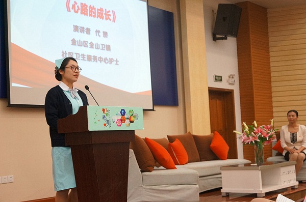 报告开始,一部“爱的港湾”宣传短片便深深地打动了所有人。随后,金山卫镇社区卫生服务中心党支部书记陶建秀、护士代娇、家属代表谭红、舒缓疗护病区护士长王春梅、志愿者代表周红和金山区新闻传媒中心记者付婷分别以不同的身份、从不同的角度讲述了“爱的港湾”服务团队和崇高精神,台上讲述者质朴、舒缓而深情的话语,让台下数百师生听得入神。