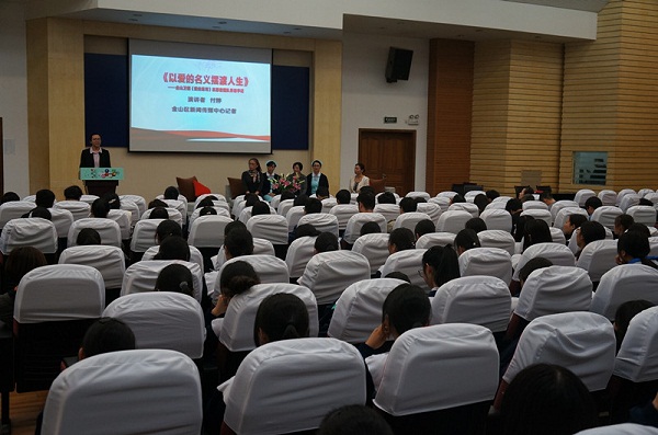 “爱的港湾”先进事迹报告会金山卫校专场于10月23日下午举行,区卫计委主任鲁桂根、部分医疗卫生单位代表及我校全体师生参加了报告会。