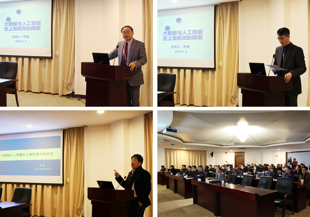 1月3日下午学校特邀上海市决策咨询委员会委员、原上海市卫生计生委副巡视员、原上海市医改办副主任许速教授来校作“大数据人工智能在上海医改中的应用”的信息化专题讲座。黄钢校长、许铁峰副校长、各二级学院(部)、职能部门、附属卫校党政负责人,各党总支、直属党支部宣传委员,信息联络员,二级网站管理员,附属医院代表约百余人聆听了讲座,许铁峰副校长主持会议。