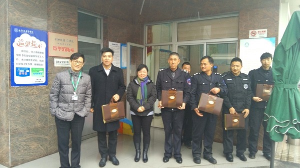 汤副校长一行,来到门岗、宿管室、食堂、教育超市等处,给员工们送上节日礼品。并与他们亲切交流,感谢他们为全校师生默默的付出,叮嘱他们注意防寒保暖。要求物业维修师傅做好冰冻雨雪天气各项设施设备的检查,保证内地中职班学生及留校教师的生活学习。