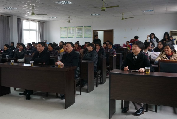 为深入推进“两学一做”学习教育常态化制度化,推进联系服务群众工作,进一步深化“双百结对”工作,1月19日,金山分校党支部与结对村朱泾镇新泾村开展了一场别开生面的“溢暧新泾”2018迎新春活动。参加此次活动的领导有金山区卫计委党委委员、副主任杨健,新泾村党总支书记蒋亚强、主任朱元峰,金山分校党支部书记夏美芸及部分师生和新泾村村民约80人。