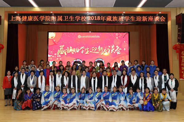 2月10日下午,上海健康医学院附属卫生学校2018年藏族学生迎新座谈会在徐汇校区大礼堂二楼举行。上海市教育卫生工作委员会党委副书记高德毅、徐汇区卫计委副主任张蕾、徐汇区凌云街道党工委书记朱龙霞、健康医学院党委书记郑沈芳、校长黄钢等各级单位领导出席此次座谈会,并与58位藏族学生代表亲切交谈。