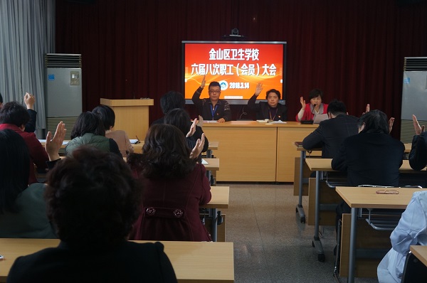 3月14日下午,上海健康医学院附属卫生学校金山分校六届八次职工(会员)大会在工会活动室召开。会议由校党支部书记夏美芸主持,全校33名教职工参加了会议。