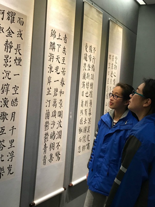 本次展览作品内容丰富、形式多样,参观过程中大家仔细欣赏了馆内不同字体的书法,感受国学魅力,让同学们大开眼界,深受启迪。常言道“见字如见人”,一手好字不仅可以体现一个人良好的文化素养,而且对陶冶人的性情很有帮助。希望同学们都能掌握书法艺术,努力练就一手好字。(金山分校)
