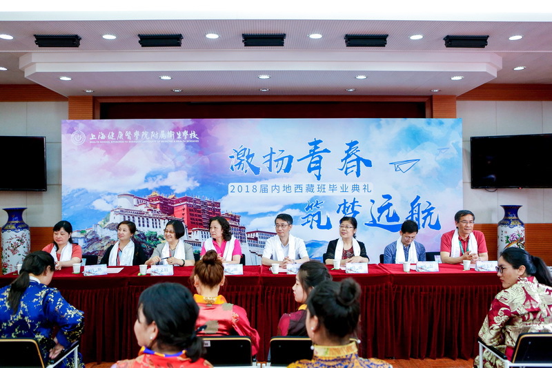518日下午,2018届内地西藏班毕业典礼在学校教工活动中心隆重举行,徐汇区民族联会长雍丽、副会长葛倩、健康医学院副校长许铁峰、学工部部长钱艳、凌云街道党工委代表、附属卫校党政领导班子、各科室、系部、教师代表,共同庆祝702018届毕业生顺利完成在上海的学习生活,学成回乡。