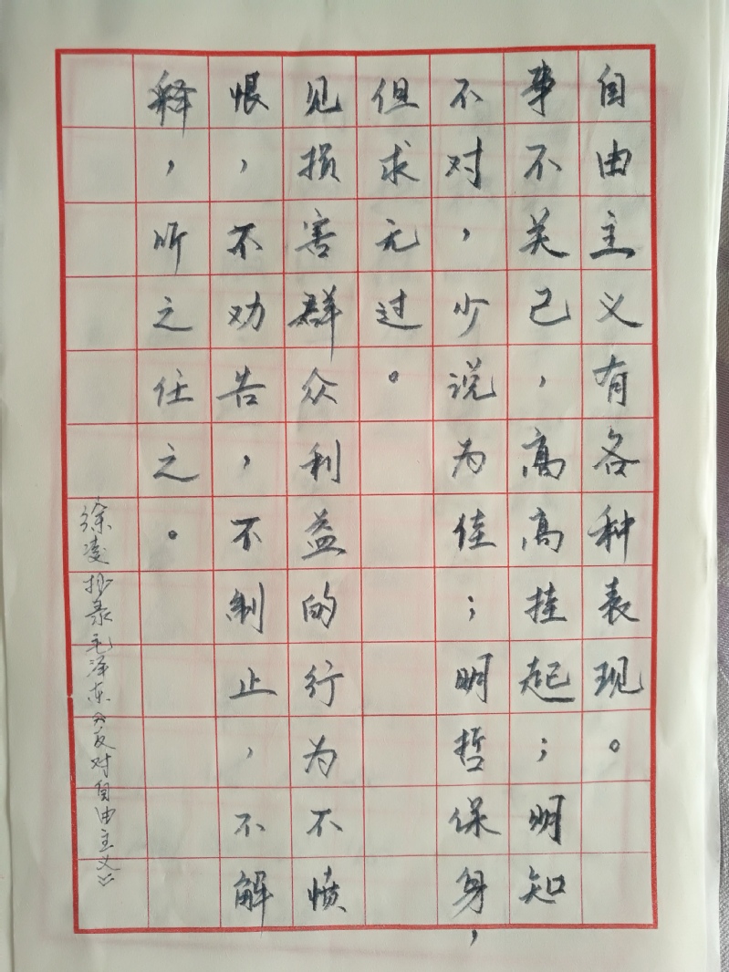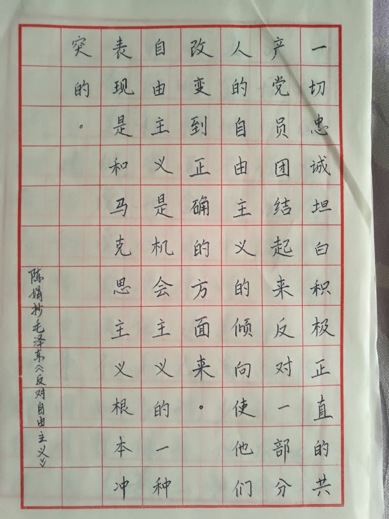 本次学习活动,全体党员同志从文章中摘录自己认为最为警醒的段落,进行一次硬笔书法比赛,使之内化于心、外化于行。