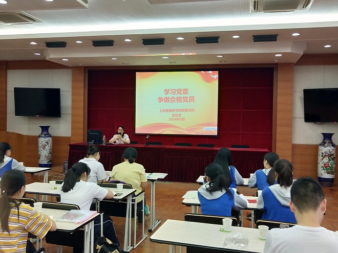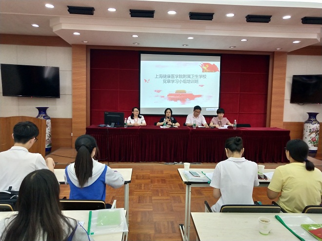 6月11日下午17:30,附属卫校党总支经过前期充分的准备和组织安排,2018年党章学习小组培训班在徐汇校区职工活动中心正式开班。来自15级递交入党申请书的20位学生参加了此次培训。党总支书记朱文娟、组织委员朱彩英、青年委员朱聿璜、宣传委员许敏和团总支书记郭智敏出席了此次开班仪式。