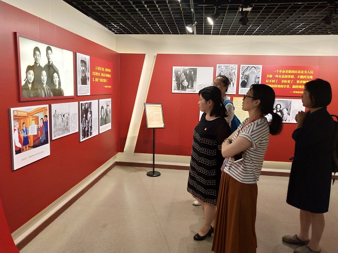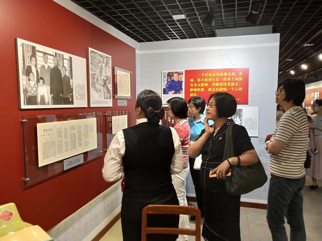 习近平总书记曾强调“不论时代发生多大变化,不论生活格局发生多大变化,我们都要重视家庭建设,注重家庭、注重家教、注重家风”,使得“千千万万个家庭成为国家发展、民族进步、社会和谐的重要基点。”家风是一个家庭世代相传的风尚和作风,它不仅关系一人得失,一家荣辱,更关系党风、政风、民风。本次 “中国共产党人的家风”展览分为“老一辈革命家的家风”、“革命先烈的家风”和“新中国成立以来优秀共产党员的家风”三大部分,以不同历史时期的三十多位优秀共产党人的家风故事为主线,通过二百四十余件图片和影像档案资料,真实反映了不同历史时期共产党人特别是老一辈革命家感人的家风故事,诠释了中国共产党人的革命信仰与道德风貌。中心组成员从进门参观的那一刻就被红色背景的主题深深吸引住了,在每一个老革命家的家风故事面前都驻足不前,细细品味,从中学习他们的优良传统。