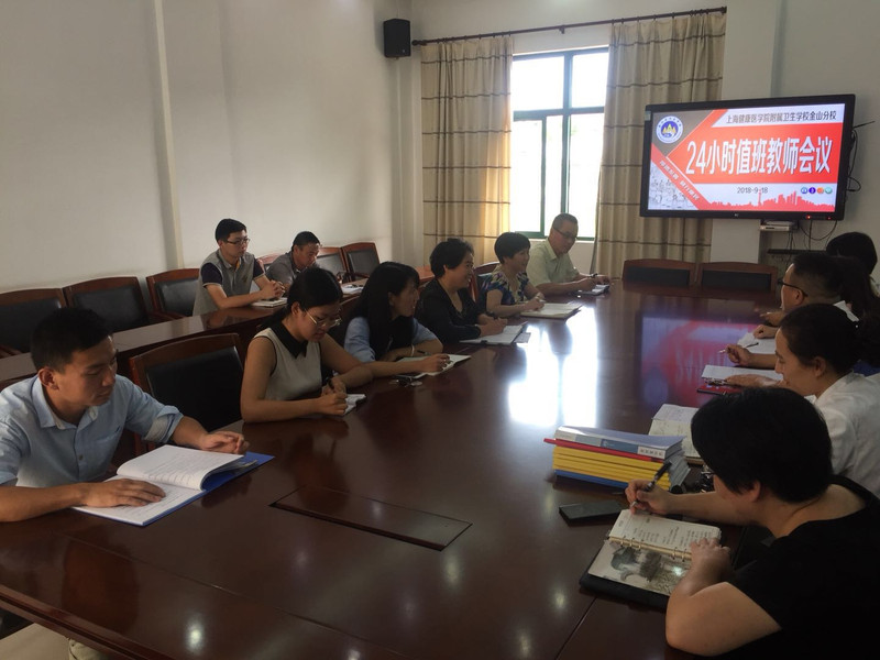 为进一步健全校园安全防范机制,增强教师抓好校园安全工作的紧迫感和责任感,依法执教,依法治校,9月18日下午,金山分校在会议室组织召开新学期24小时值班教师工作会议。周芬华校长、夏美芸书记,以及全体值班教师参加了会议。