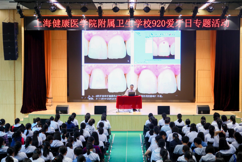 口腔药学系邀请包向军副主任医师,在大礼堂为广大师生普及口腔知识,此次讲座到场近400位师生,讲座主题为《口腔修复体的颜色美学》。包主任以爱牙日的由来入题,讲解了各种牙病的危害及预防知识、告诉同学们怎么科学刷牙和保护口腔健康的方法,以及口腔修复知识。让在场的师生们受益匪浅,包主任的讲座为师生们的口腔健康奠定了基础。